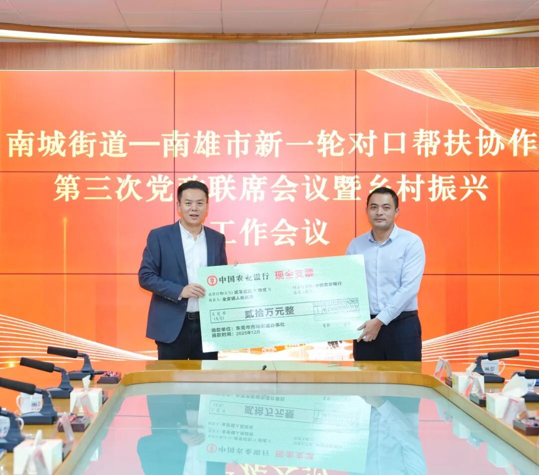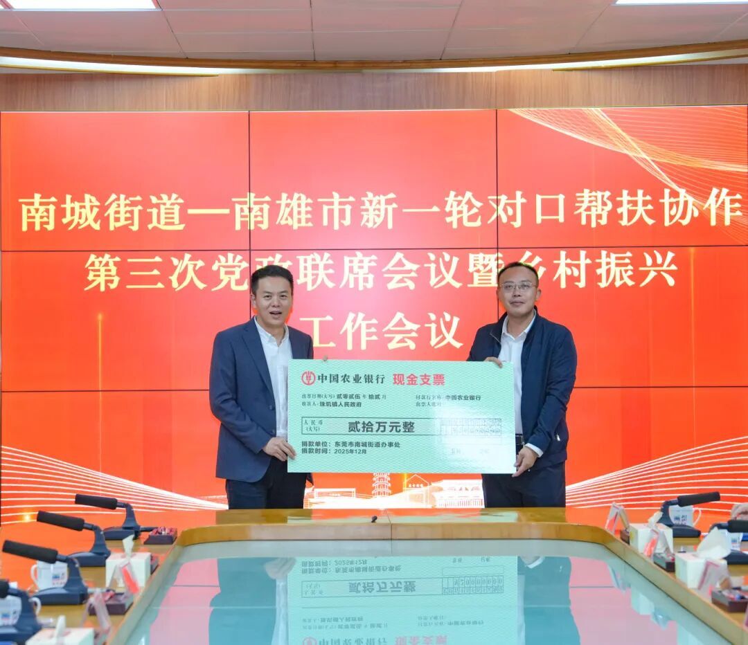 会上,南城街说念离别向珠玑镇、全安镇捐赠帮扶资金20万元,撑合手当地镇域发展。