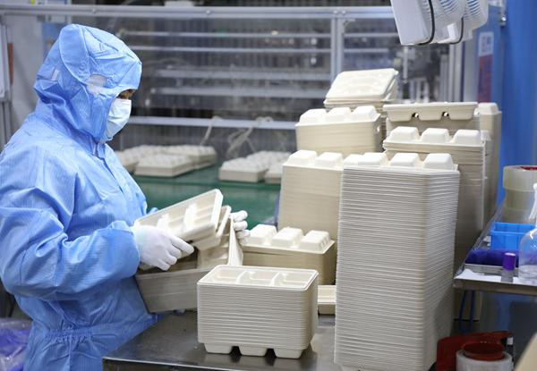 广西绿联将蔗渣退换为可降解的环保餐具。韦鑫摄